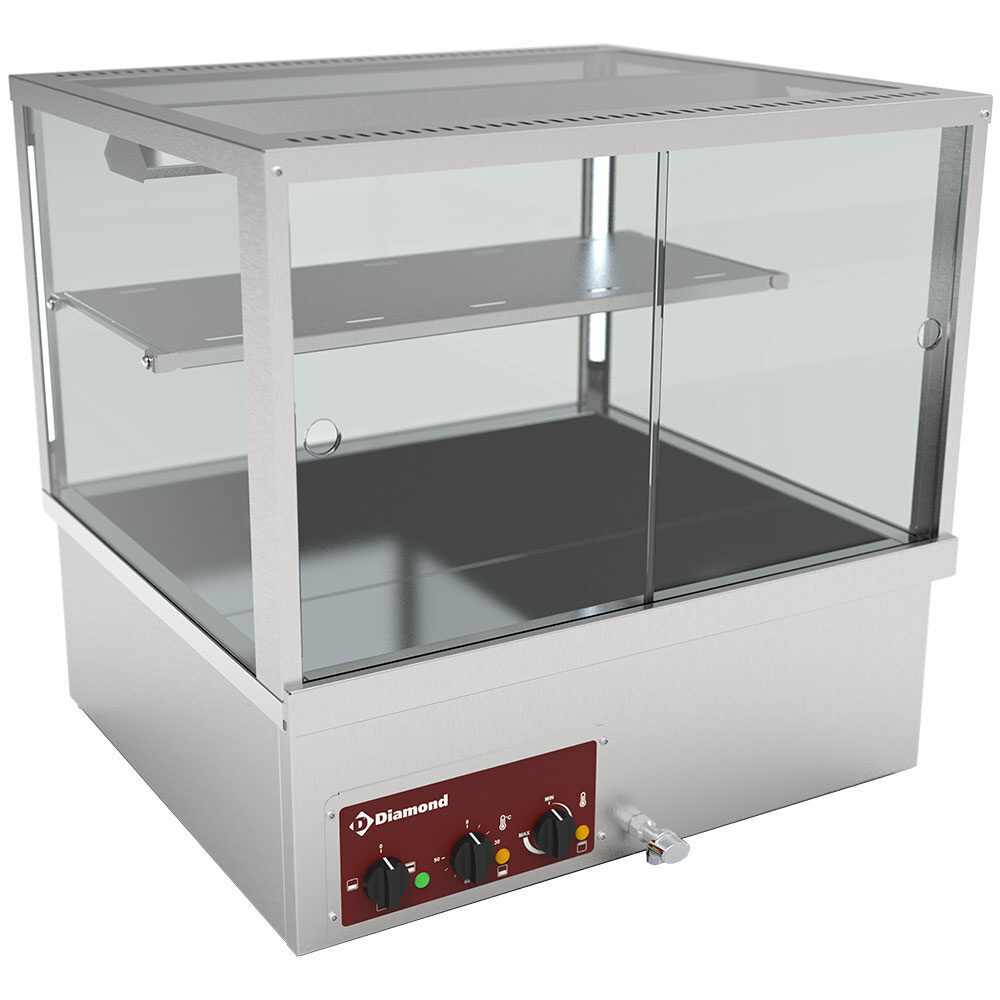 - Flexibiliteit: Keramische verwarmingselementen bovenaan, gecombineerd met een bain-marie, zorgen voor het op temperatuur houden van gerechten met respect voor alle hygiënenormen.