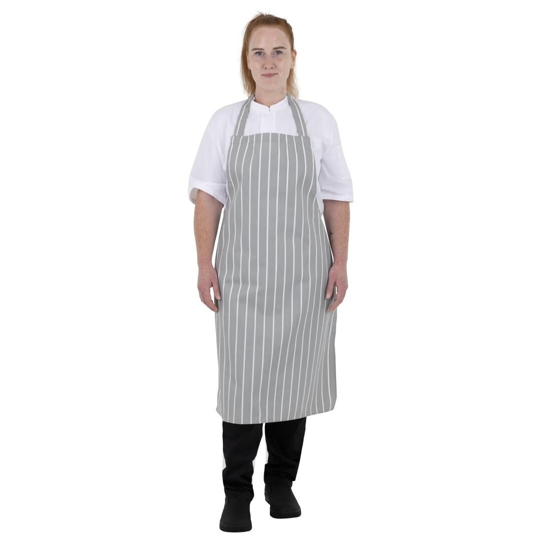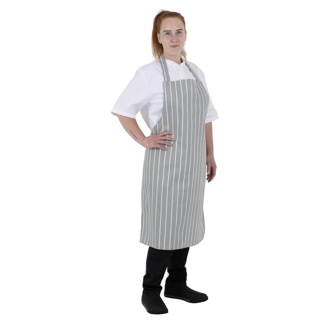 In een stijlvol grijs en wit ontwerp combineert de gestreepte slagersschort van Whites mode met functionaliteit, waardoor het perfect is voor professionele keukenomgevingen.Ontworpen voor duurzaamheid en gemak, heeft de schort een klassieke pasvorm die je comfortabel houdt tijdens lange diensten, terwijl de volledige bibvorm effectief je witten beschermt tegen spetters en vlekken - perfect om je een verzorgde uitstraling te laten behouden. Bovendien is het geschikt voor commerciële wasserij, wat zorgt voor snelle en gemakkelijke reiniging.