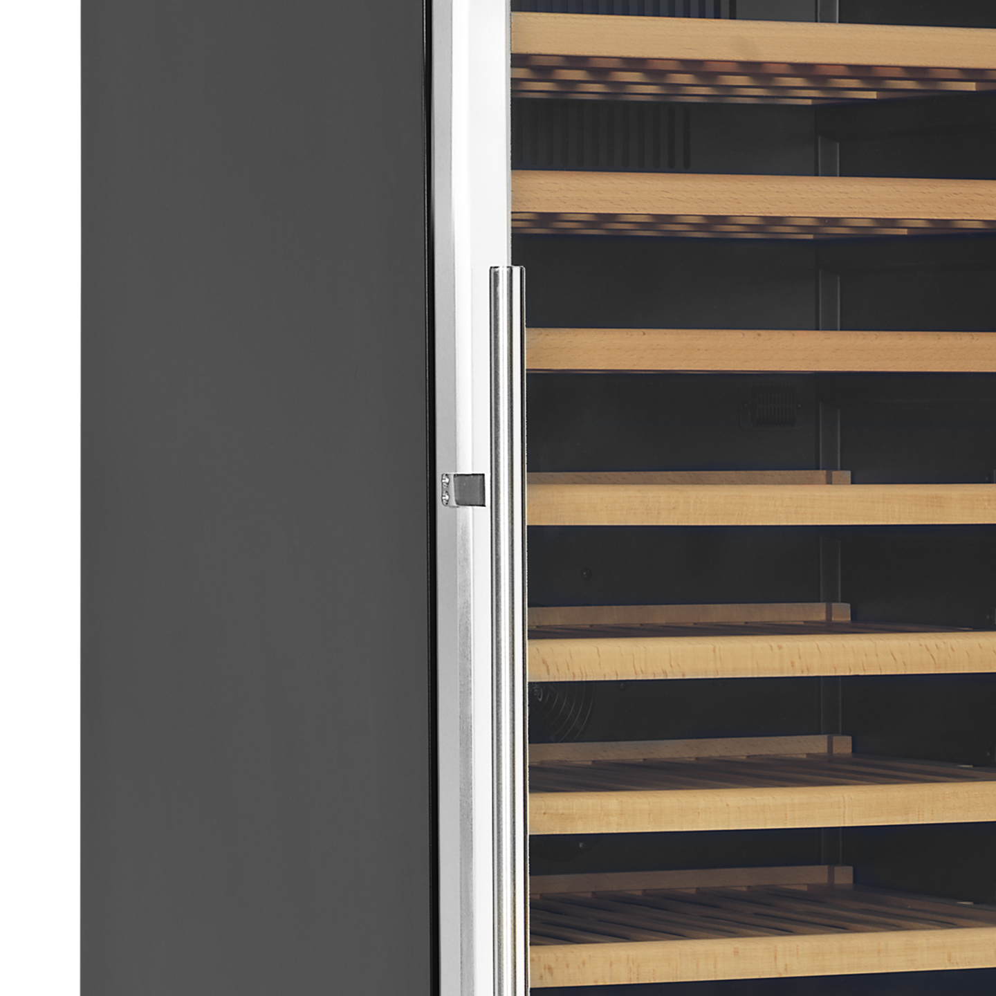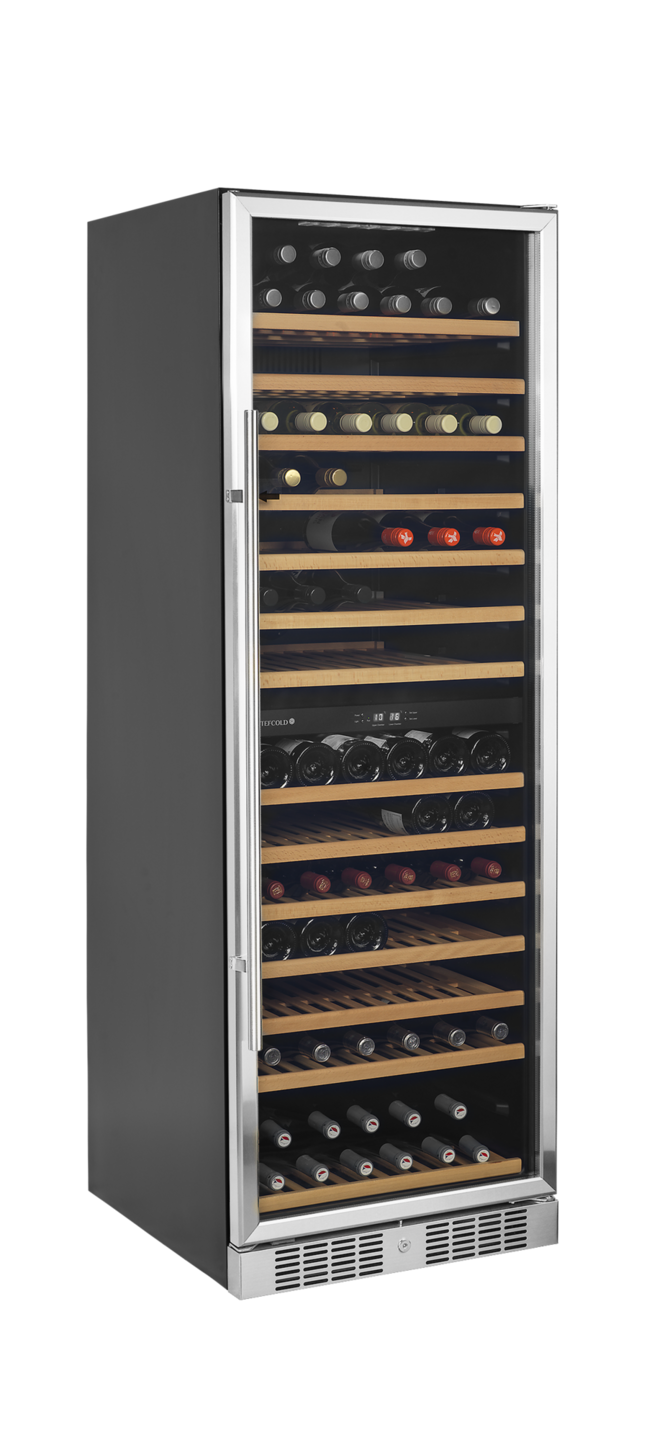 De TFW-S-serie wijndisplaykoelers van roestvrij staal biedt een eigentijdse oplossing voor het presenteren en bewaren van wijnflessen.Een elegant ontwerp met een roestvast stalen front, een zwarte binnenkant, zachte ledverlichting en uitschuifbare houten leggers.