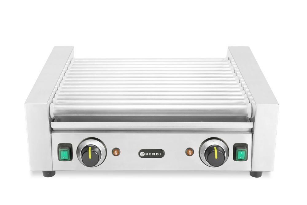 Rollerlengte: 45 cm.Het HENDI worstrolgrill - 2 zones is gebouwd met duurzame roestvaststalen behuizing en rollers, verwarmt snel en houdt de temperatuur constant dankzij snel warmteherstel. Met 2 onafhankelijk regelbare verwarmingszones en een rollerbreedte van 45 cm biedt het flexibiliteit tijdens drukke serviceperiodes. Een uitneembare lekbak zorgt voor eenvoudig schoonmaken.