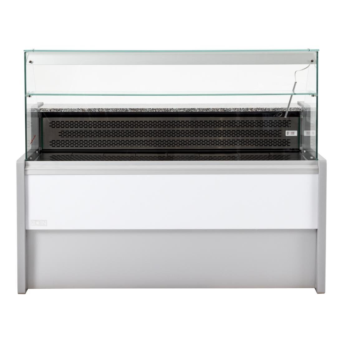 Houd je populairste voedsel en dranken perfect gekoeld, aantrekkelijk gepresenteerd en klaar om te serveren met de 1500mm brede Zoin Tibet gekoelde toonbank in grijs.Met echt indrukwekkende opslagruimte zonder veel ruimte in beslag te nemen, biedt de Zoin zowel een bovenste displayoppervlak als een tussenliggende glazen plank, allemaal achter een slank ontwerp - perfect voor kleinere locaties zoals afhaalrestaurants of delicatessenzaken. Of je nu koude vleeswaren, kaas, kant-en-klare maaltijden of andere delicatessen aanbiedt, deze toonbank is een uitstekende slank vormgegeven optie.De Zoin Tibet toonbank biedt uitzonderlijke veelzijdigheid, zodat je zowel kunt voorbereiden als serveren vanaf één positie. Het ingebouwde werkoppervlak van roestvrij staal kan worden gebruikt om wraps voor te bereiden, fruit te snijden of eenvoudig bestellingen van klanten in te pakken, allemaal beschermd achter het voorste geharde glazen scherm.
