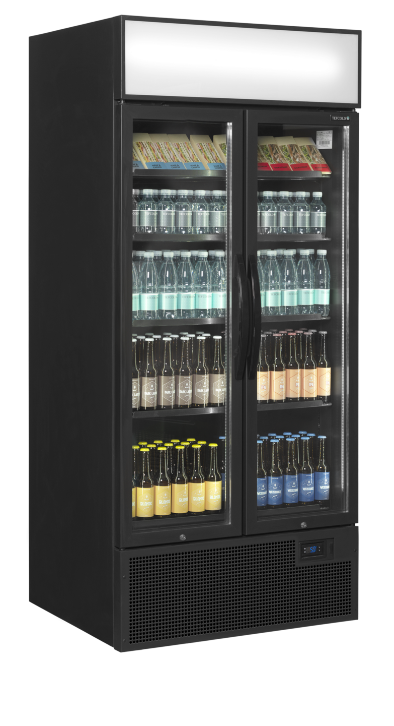 De FSC BLACK serie 2-deurs zwarte displaykoelers met verlichte canopy bieden uitstekende bouwkwaliteit tegen een competitieve prijs. Het heeft een moderne uitstraling met zwarte glazen deuren met een aluminium frame met zwarte binnen- en buitenkant. De verstelbare draadplanken dragen bij aan de flexibiliteit van de FSC-serie. Het garandeert sublieme productpresentatie, dankzij het efficiënt geventileerd koelsysteem. Deze kan geregeld worden doormiddel van de elektronische termostaat. Verscheidene modellen zijn ook verkrijgbaar zonder canopy (FC-serie).