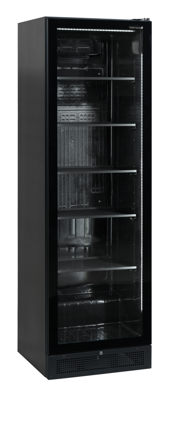 De SCU1425-serie flessenkoelers brengt betaalbare displaykoeling naar een nieuw kwaliteitsniveau. De zwarte buiten- en binnenzijde verlenen de koeler een elegant tintje. De koeler heeft een frameloze glazen deur over de hele hoogte, verstelbare planken en ledverlichting binnenin voor een optimale productpresentatie. Een koelsysteem met ventilator zorgt voor een gelijkmatige koeling van de hele kast. Wordt standaard geleverd met een rechts- of linksdraaiende deur.